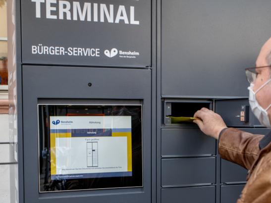 Das Abholterminal ermöglicht die sichere, rund um die Uhr (24/7) Abholung von Ausweisen, Dokumenten und Kfz-Kennzeichen – unabhängig von den Öffnungszeiten des Bürgerbüros.